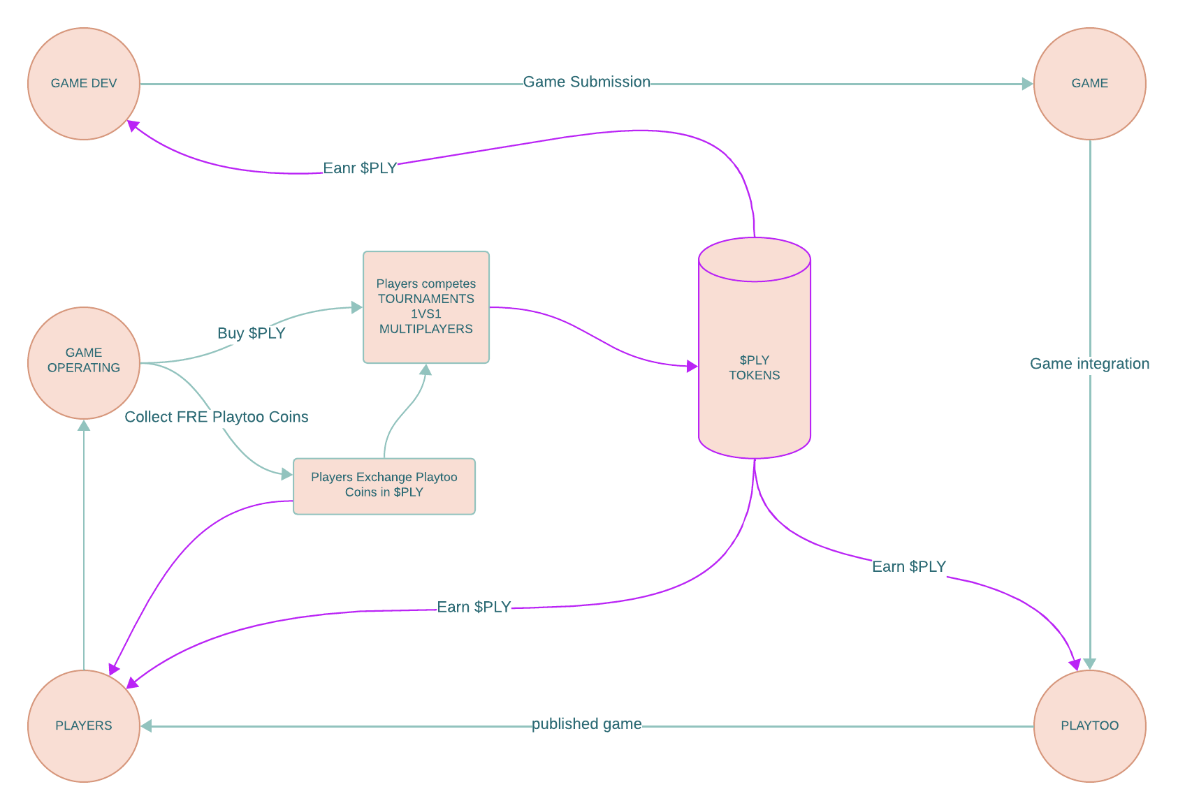 Our ecosystem is an innovative solution that connects content providers (game developers), service users (players) , and content managers (Playtoo) all united by a single crypto token, $PLY. This token rewards those who create the fun, those who play and those who offer it, creating an unstoppable circular economy.